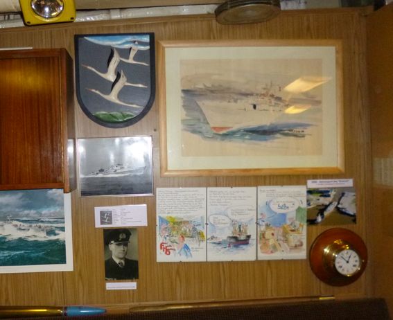 Bei einem Besuch des 1. Vorsitzenden, Kalle Scheuch, und seines Stellvertreters, Wolfgang Hammer, bei der Marinekameradschaft der ehemaligen Patenstadt Hiltrup/Westf. konnte festgestellt werden, dass nicht nur im Vereinsheim das anlässlilch der Patenschaftübernahme überreichte Modell des "Kranich" aufgestellt war und das Wappen des "Kranich" an der Wand hing sondern es im Bürgerhaus eine Vitrine gab, in der u.a. der damals überreichte Rettungsring des "Kranich" ausgestellt war.