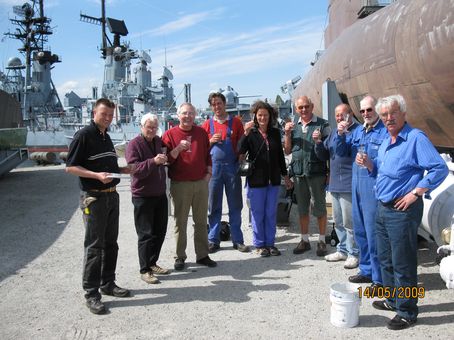 Sekt für das neue Exponat; Instandsetzungscrew und Besucher aus Krefeld - Foto: H. Klose