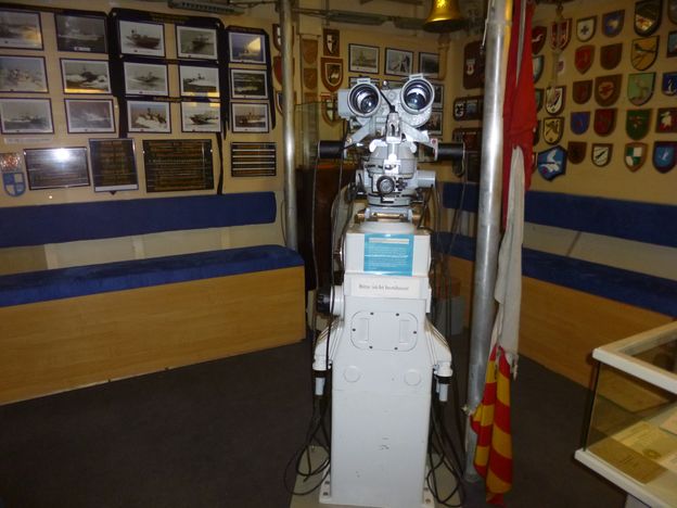 Mitten im Raum steht die Torpedozielsäule mit dem RZA 5b. Daneben hängt das Unterscheidungssignal - Delta Bravo Sierra Yankee.