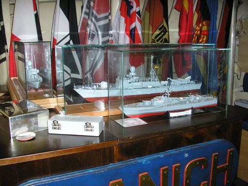 Modelle S-Boote Typ 140 und Typ 143A vor der Flaggenwand - Foto: K. Scheuch