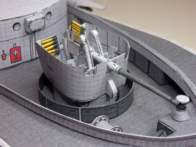 Achteres Geschütz des vergrößerten Papiermodells - Foto: Joachim Frerichs