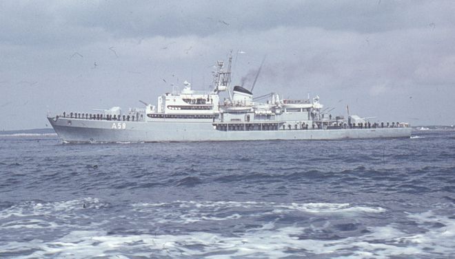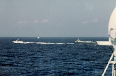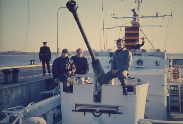 Tender "Rhein" trifft S-"Kranich" in der Ostsee (Fotos: Heino Weiss) Am Tage der Familienmitfahrt für die Einheiten des 3. SGschw fährt Tender "Rhein" mit seinen Gästen in der Kieler Bucht Richtung Flensburger Förde. Es scheint ein ruhiger Tag zu sein. Die Gäste fühlen sich an und unter Deck wohl. Die Ansteuerungstonne "Flensburger Förde" wird gerade passiert. Da hört man von fern starke Dieselmotoren. Das sind sie auch schon: Drei Boote einer S-Boots-Division. Die Boote scheinen in großem Abstand passieren zu wollen. S-"Kranich" als Führerboot dreht auf den Tender zu. Der Geschwaderstander weht im Topp. "Kranich" passiert den Tender "Rhein" an Steuerbordseite. An Deck Besatzungsangehörige und Gäste. Auch die Boote sind auf Familienmitfahrt. Als S-"Kranich" steuerbord querab ist, wird Front gepfiffen. "S-Kranich" dreht leicht nach Steuerbord und fährt durch die Bugsee des Tenders. Kurs Heimat. Die Boote der Division fahren auch vorbei. Es wurde Gefechtsstaffel an Steuerbord befohlen. Die Boote entfernen sich mit Großer Fahrt. Der Segler hat die Heckseen gut überstanden. Tender "Rhein" - Besatzung in Paradeaufstellung - Foto: HJ. Zarske