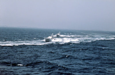 ![]() Boot beim Kreuzen Kielwasser Vordermann - Foto: Scheuch