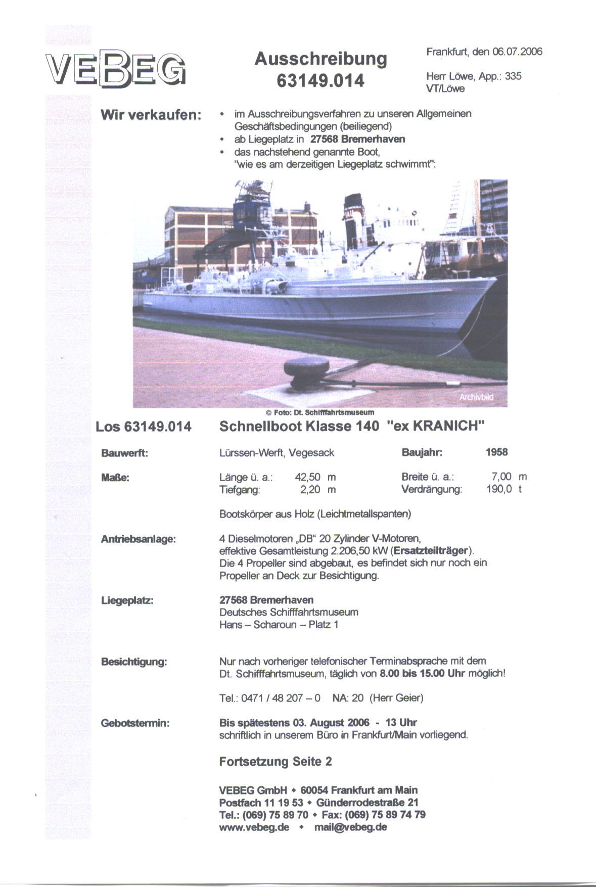 Der "Kranich" steht bei der VEBEG zur Verschrottung oder zur musealen Nutzung zum Verkauf Die folgenden Seiten wurden heruntergeladen von: http://www.vebeg.de/web/de/verkauf/browse.htm