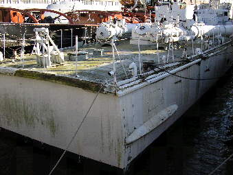 Der "Kranich" ist mit Auslaufen der Frist 03.08.2006 gegen Höchstgebot 5.000 Euro verkauft worden, so war der Nordseezeitung, Bremerhaven, zu entnehmen. Wer der Käufer ist, war bislang nicht zu erfahren. Bisher war nur zu erfahren, dass der Käufer das Boot erhalten will, um es museal zu nutzen. Er hat 10 Tage Zeit, das Boot zu bezahlen, geht das Geld bis dahin nicht ein, so wird das Boot gemäß VEBEG entsorgt.. Nach Schätzungen müssen etwa 1,5 Mio Euro aufgewendet werden, um das Boot wieder museumswürdig zu machen. Das Achterdeck ist jetzt auch in Auflösung begriffen Spiegel und Bordwand - vergammelt Der Mast ist durch Rostfraß abgeknickt Die Motoren nur noch Kaskos - Zylinder und Kurbelwellen ausgebaut Kojen und Spinde in den Decks sind verschimmelt |