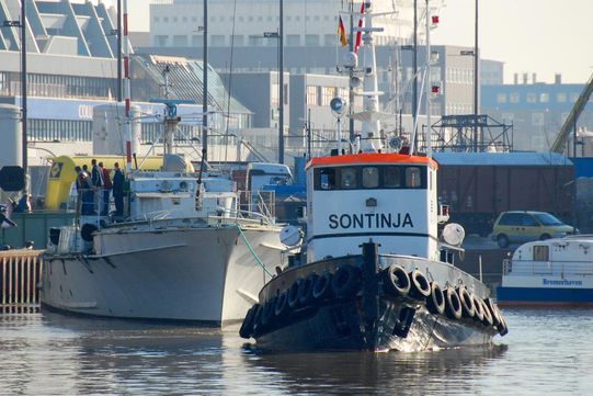 Am 09.02.2008 erreicht uns der Artikel aus der Nordseezeitung, dass ex-"Kranich" am Montag (11.02.2008) abgeholt werden soll. Der Direktor der Abwrackwerft bestätigt den Termin am Telefon. Am 11.02.2008 wird ex-"Kranich" auf den Haken genommen. Nach einigem Hin und Her geht der Schleppzug bestehend aus dem Schlepper "Sontinja", dem ex-"Kranich" und einem kleinen Bugsierboot durch die Schleuse in das braune Wasser der Weser.