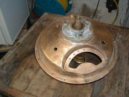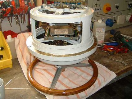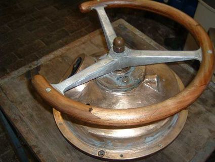 Der Deckel des Ruders Das Ruderrad ist schon wieder eingefügt Der Einbau der Einzelteile beginnt Da wird auch schon mal der Kaffee kalt Das Ruder im Vereinsraum |
