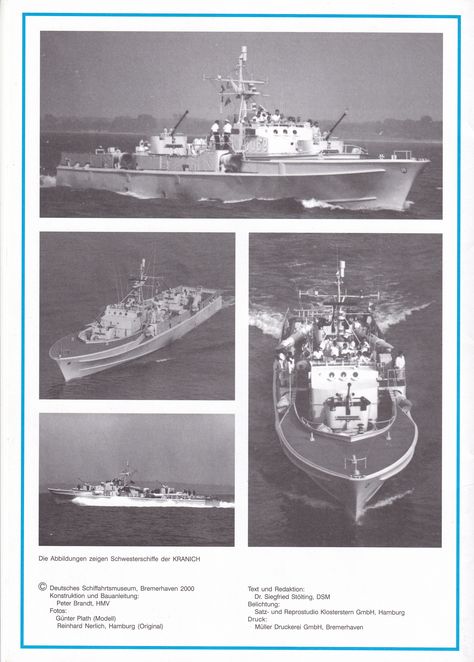 Obwohl das Deutsche Schiffahrtsmuseum, wie wir als bittere Erfahrung feststellen mussten, nur wenig bis keinen Sinn für das ehemalige Schnellboot "Kranich" hatte, ließ es Modellbaupläne im Maßstab 1:100 des Bootes für Papiermodelle herstellen und drucken. Die Modellbaupläne wurden seinerzeit im Shop des DSM angeboten und verkauft. Die oben gezeigten Bilder sind Scans der Vorder- und der Rückseite der Modellbaupläne, die inliegend die Modellbaupläne im Stil der Wilhelmshavener Modellbaupläne für den Bau eines Papierbootes enthalten und heute über den Kartonmodellbau-Shop (kontakt@Kartonmodellshop.de) zu beziehen sind. In der Zeitschrift ModellWerft 6/2019 hat Herr Joachim Frerichs auf den Seiten 76 - 79 unter dem Titel "Jaguar-Klasse ganz groß" beschrieben, wie er den 1:100 Papier-Bogensatz vom Schiffahrtsmuseum in B´haven auf 1 : 50 vergrößert, und in hoher Qualität - ebenfalls als Kartonmodell - gebaut hat. Blick über die Brücke nach achtern des vergrößerten Papiermodells - Foto: Joachim Frerichs Brücke des Papiermodells vom "Kranich" - Foto: Joachim Frerichs Vorderes Geschütz des vergrößerten Papiermodells - Foto: Joachim Frerichs Achteres Geschütz des vergrößerten Papiermodells - Foto: Joachim Frerichs Das fertige vergrößerte Papiermodell - Foto: Joachim Frerichs Der ehemalige II WO des Bootes, Wolfgang Hammer, hat inzwischen den Modellbauplan nach Jever geschickt. Er wird unter Plexiglas beim Modell des Bootes in der Dauerausstellung des FMS ausgestellt werden. Das Modell S-"Kranich von H.H. Jürgens in der Dauerausstellung auf "Mölders" - Foto: K. Scheuch Falls auch noch ein Papiermodell des "Kranich" eingeht, wird auch dieses einen Platz in der Aussstellung finden.